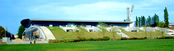 Bruttogeschoßfläche 48.546 qm Baukosten: DM 150 Mio Spannweite: 68,5 m Tribünenplätze: 8.500 Zuschauer maximal: 14.000 Bauhauptgewerk: Illbau Deutschland GmbH mit Joppien Dietz Architekten |